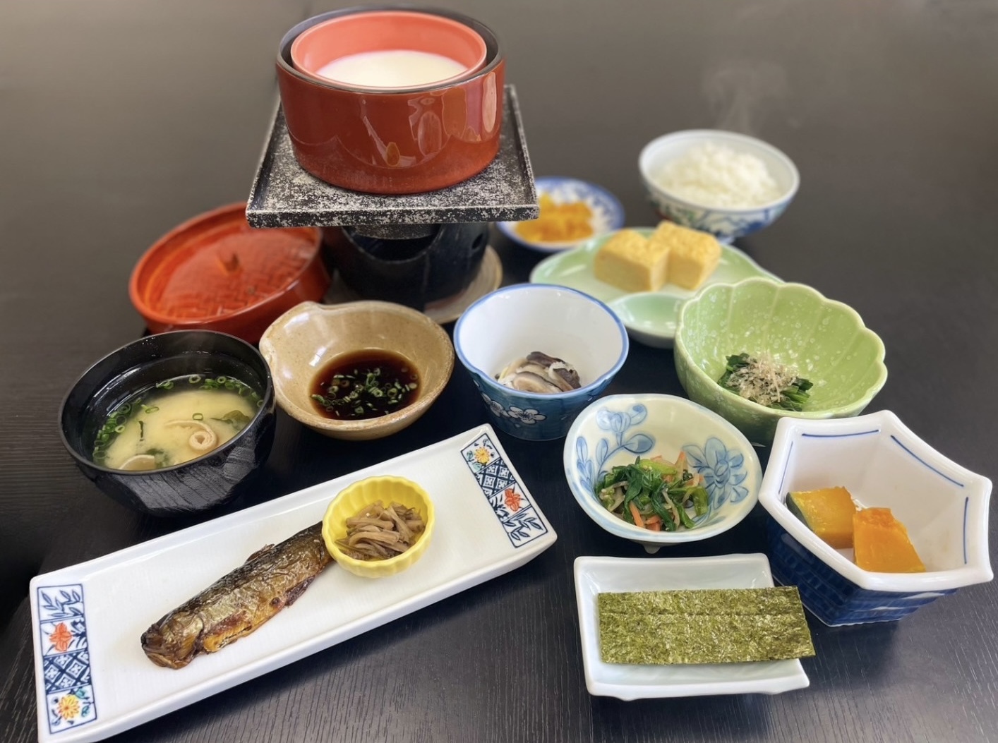 朝からちょっと贅沢な気分を味わいたい方にぴったりの松本屋の人気朝食。豆乳を温めた出来立ての温かい豆腐は、ふわっとした食感と優しい味わいで一日の始まりにぴったりです。岐阜県産の契約農家から仕入れる新鮮なお米も絶品。おかわり自由なので、心ゆくまで楽しめます。