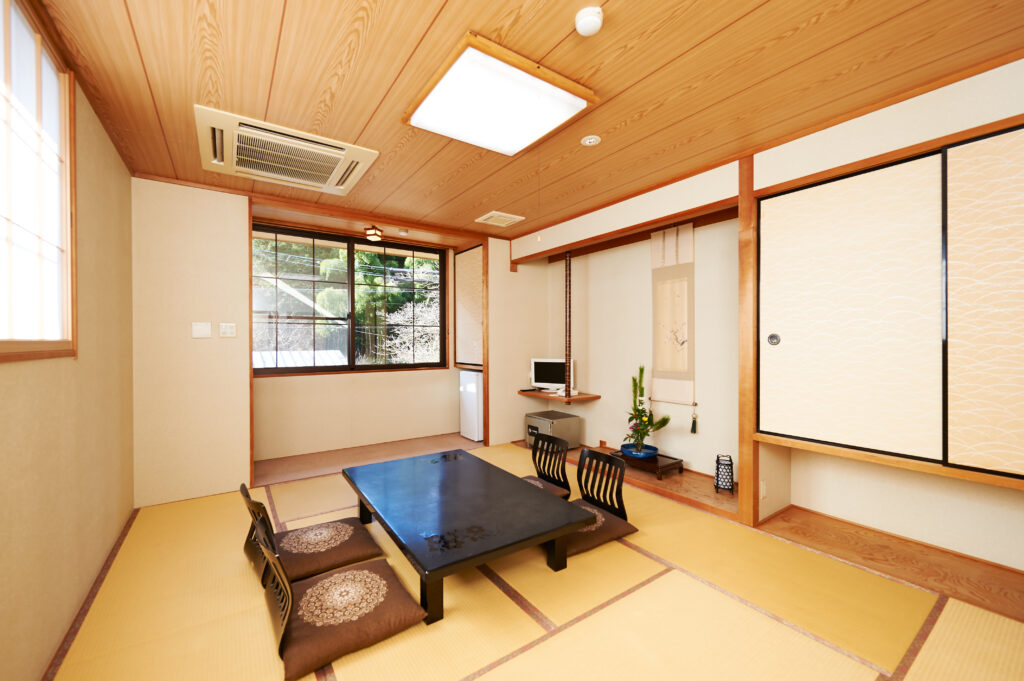 緑豊かな山道を楽しんだ後、涼しいお部屋でお食事を。